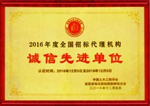 2016年被水利部評定水利建設市場主體信用等級AA級,2017年中國招標投標協(xié)會企業(yè)信用評價AAA級信用企業(yè)。